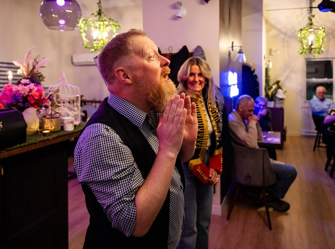 In between some of the courses, local magician Bill Wood steps out to entice the crowd with his sleight of hand. He does demonstrations and includes volunteers from the crowd, eliciting lots of giggles and adding a touch of magic to the evening.