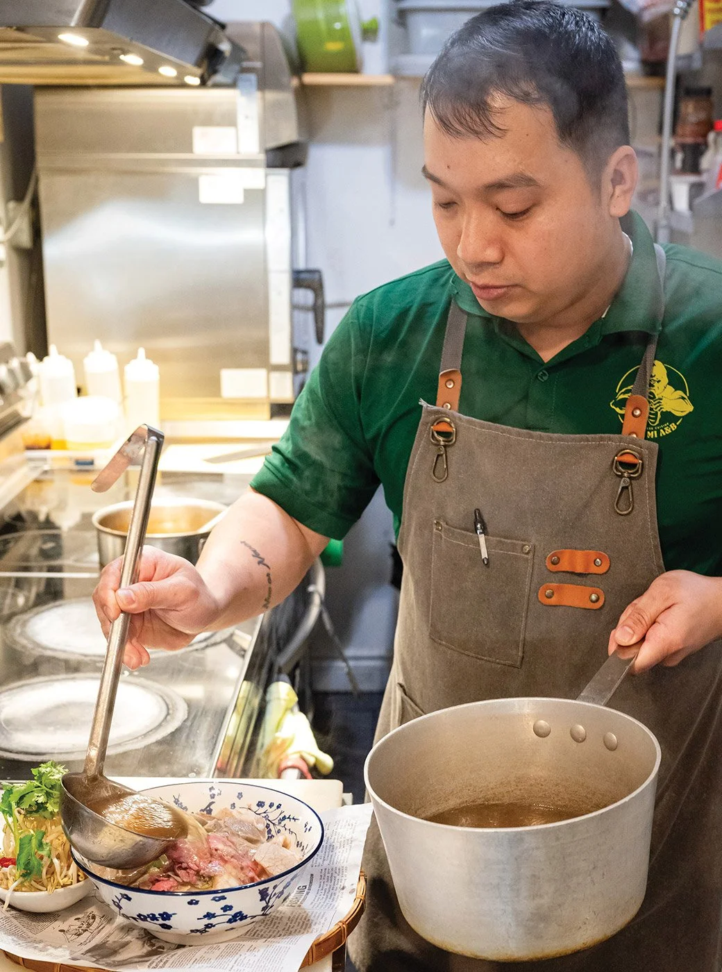 Pham prefers this northern style of pho despite growing up in southern Vietnam. He recently travelled there to learn this style, which is more minimalist with a clean and clear broth, compared to the cloudier southern-style broth that also has more toppings, seasonings and sugar.