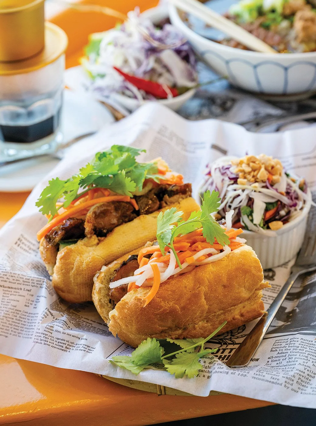I was excited when I found out that a banh mi shop was opening on Quinpool Road. I used to live in a city where banh mi (a.k.a. Vietnamese subs) were ubiquitous street food, and I miss the convenience of swinging by my corner shop for a cold cut. I visited Banh Mi A&B soon after they opened and was surprised at the chef’d up treatment, complete with colourful Vietnamese slaw and faux newsprint. Banh Mi A&B is, in fact, owned and operated by a chef, so everything is made in-house with a vibrant freshness and attention to detail.