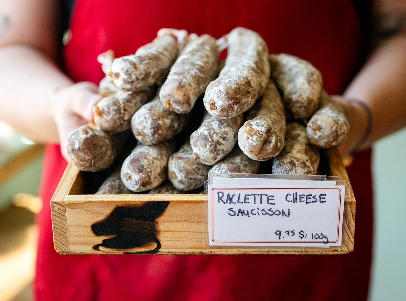 Ratinaud now has 90 varieties of cheese, 30-40 charcuterie products (all made with local ingredients), baguettes, quiches, and rotisserie chicken. There is a large freezer section full of various products and ready-to-heat meals. We have Julie Cook to thank for all things pastry: quiches, chicken pies, onion tarts, sausage rolls, and cookies. Tandy brought her onto the team a few years ago (they had worked together at Bish back in the day), and her background in the pastry arts eventually made its way onto the repertoire.