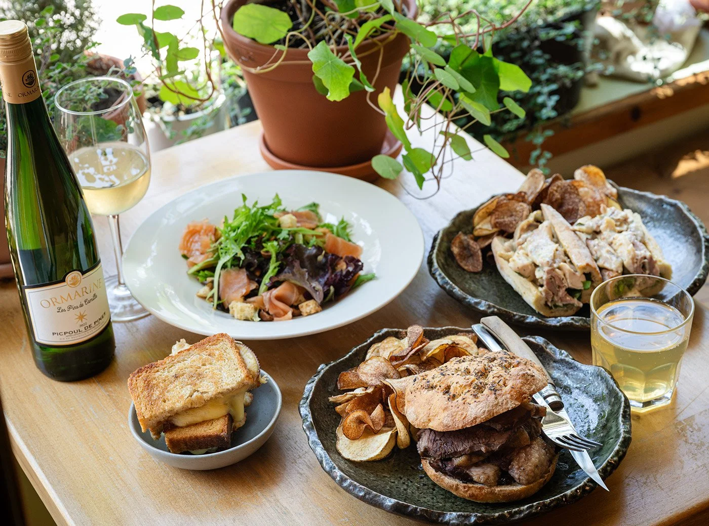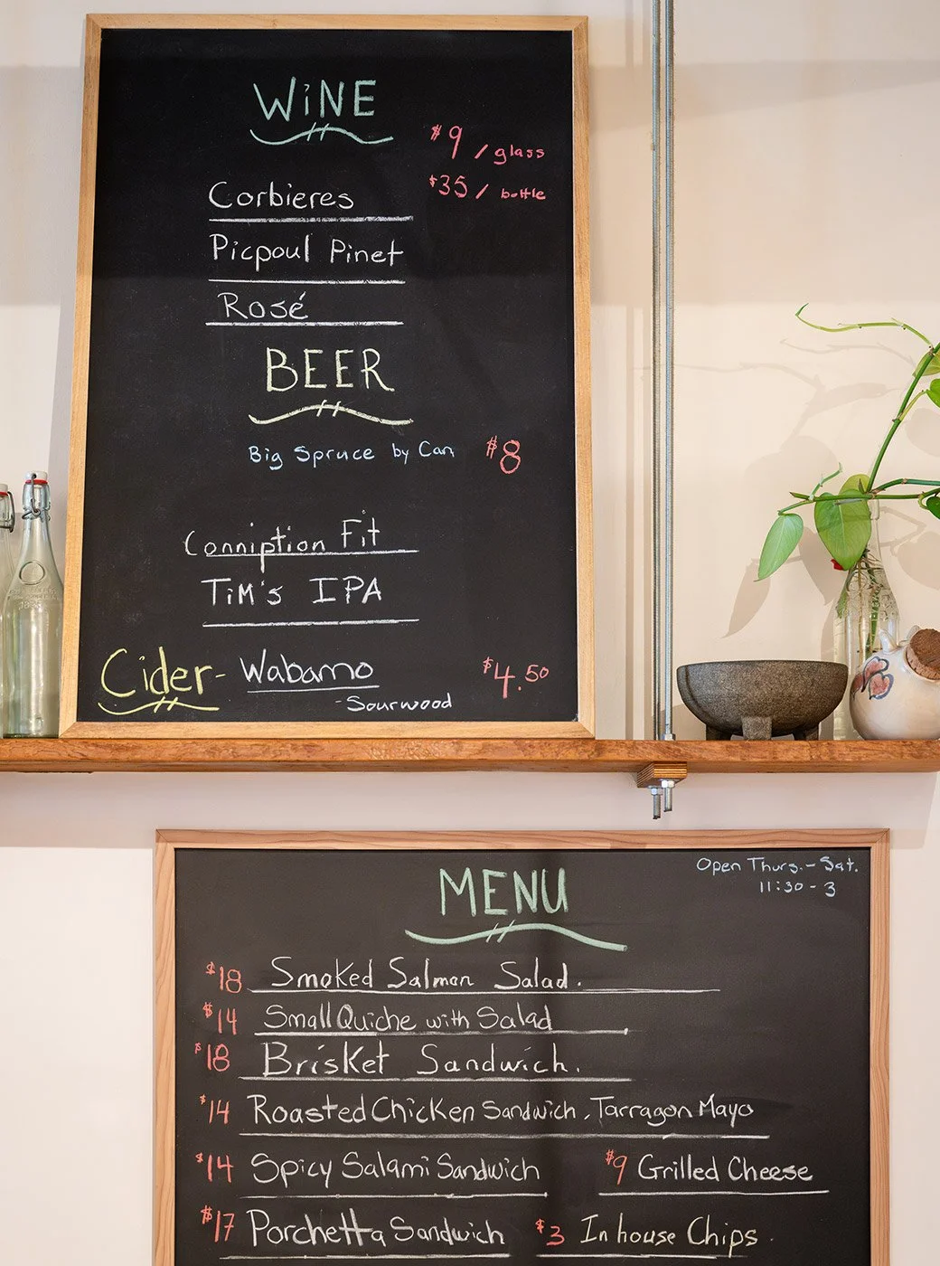 Last fall, Tandy started offering lunch in the shop’s back room on Thursdays, Fridays, and Saturdays. The small chalkboard menu mainly consists of sandwiches, quiche, salad, and house-made potato chips. Wine, beer and cider are available to pair with your lunch.