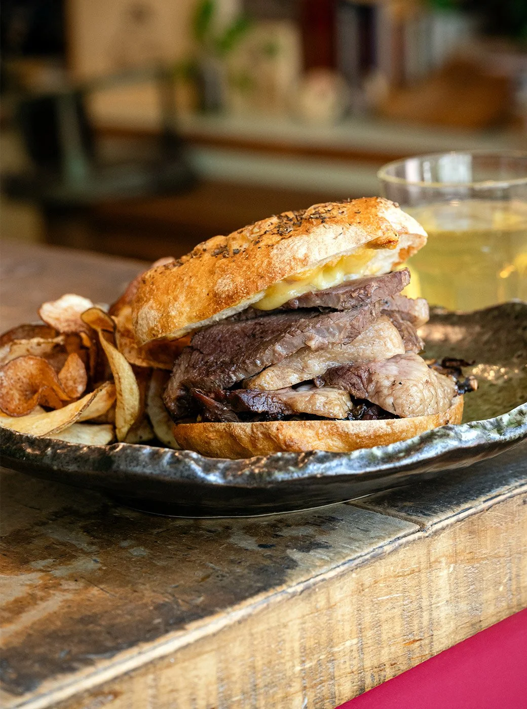 The Brisket Sandwich is much more elaborate. Tandy doesn’t have a hot smoker, and his brisket takes three days to make: it is brined, cold smoked and then cooked sous vide. It delivers all the tender meatiness and rendered fatty goodness you expect from a good brisket. Tandy serves the meat piled high in house-made focaccia with spicy raclette cheese, confit shallots in port and red wine, roasted cabbage dressed with apple cider vinegar, and candied mustard seeds. The result is like a jazz ensemble in your mouth: the flavours jive together in a syncopated harmony in which each element takes turns having a solo performance in your mouth before returning to the rhythm section: sweet, spicy, bitter, fatty, crispy, crunchy, meaty. This decadent sandwich is sure to dazzle and fulfill you.