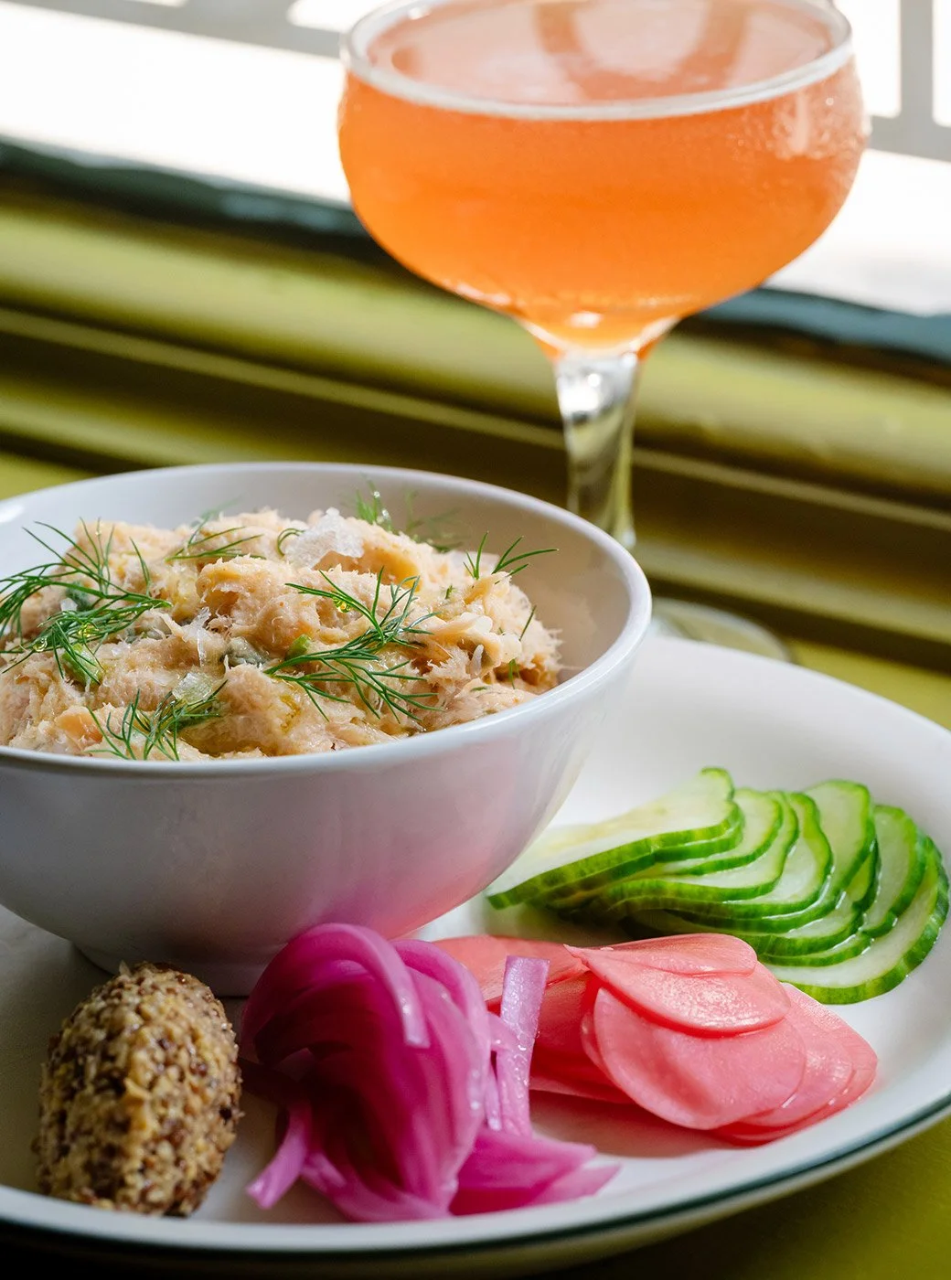 I roll in a little early for a cocktail bar. It’s still light out, but that doesn’t make much difference once inside. The bar opens at 5 p.m. It’s about 6 when we settle in the corner to take in the space. I order my favourite classic cocktail, a Negroni. Equal parts gin, Campari, and sweet vermouth, this bitter aperitivo is my preferred way to start almost any meal when dining out. My dining companion orders the house milk punch, a cocktail originating in the 1700s that uses milk, citrus, brandy, and sugar. This time-consuming drink is clarified using a 48-hour method followed by heating and straining so the final product does not appear milky in the glass. I have a sip, and it’s sweet and refreshing—but I’ll stick with my Negroni.