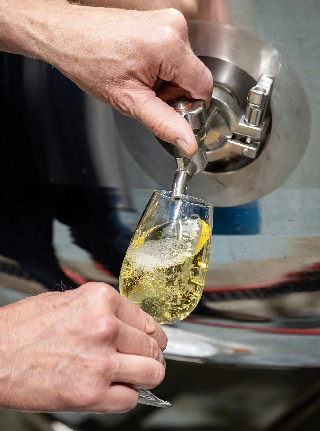 Sipping on that first batch of wild blueberry cider was an interesting experience. “We didn’t have retail or anything at that point because it was the start of the pandemic, but I was there at the facility helping the cider making, mostly cleaning tanks and doing other non-technical stuff, and it was so interesting to me how different the product is before filtration and carbonation,” Webb says, “It was so exciting getting to drink our cider out of the can and taste how good it was.”